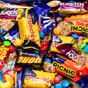 Cadbury favourites (dairy milk, caramilk, moro, turkish delight, crunchie, twirl, picnic, old gold, boost, cherry ripe, dairy milk marvellous creations)