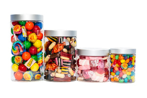 Our clear plastic jars are made from high-quality, food-safe PET with a screw matt grey lid making them reusable, durable & lightweight.