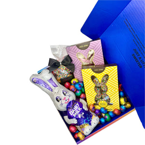 THE EASTER EGGSTRAVAGANZA hamper is a full filled Easter surprise packed with lots of festive Easter treats and chocolates. Beautifully presented and bursting with sweet goodies, it’s designed to bring excitement and joy to any Easter celebration.